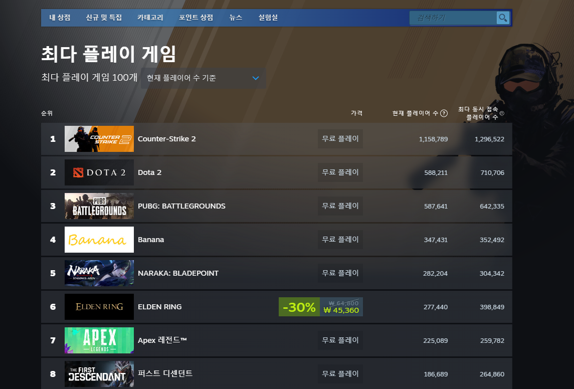 현재 스팀 최다 플레이 게임 순위에서 4위를 차지하고 있으며 동시 접속자가 35만명에 달하고 있습니다. 도대체 무슨 게임이길래 이렇게 인기일까요? 굉장히 궁금해서 저도 설치해서 플레이를 해보았습니다.