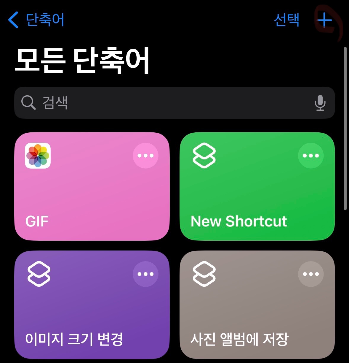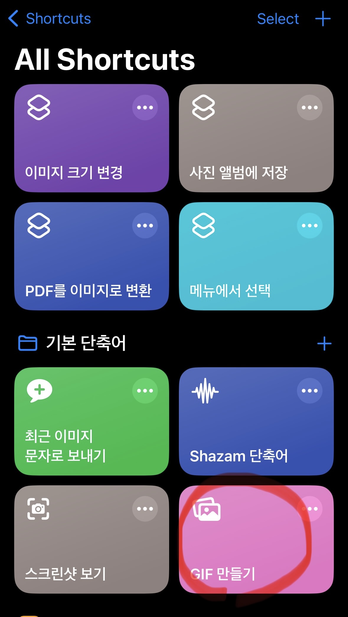 어플에 들어오시게 되면 기본 단축어로 이미 GIF 만들기가 있기는 합니다. 하지만 오늘은 단축키 기능을 이용해서 고화질 GIF 단축키를 직접 만들어 보겠습니다.