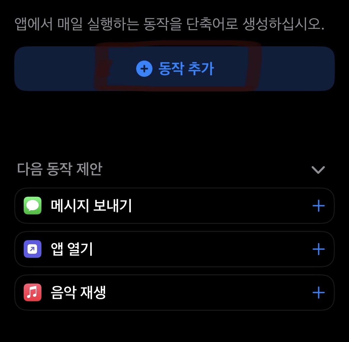 단축키 화면 우측 상단에 있는 + 버튼을 누르게 되면 +동작추가 버튼이 나오게됩니다.
