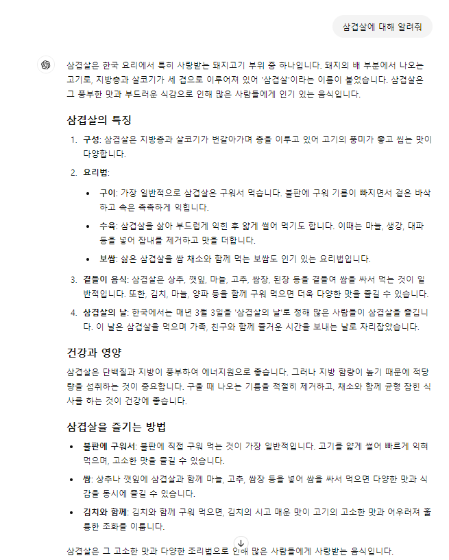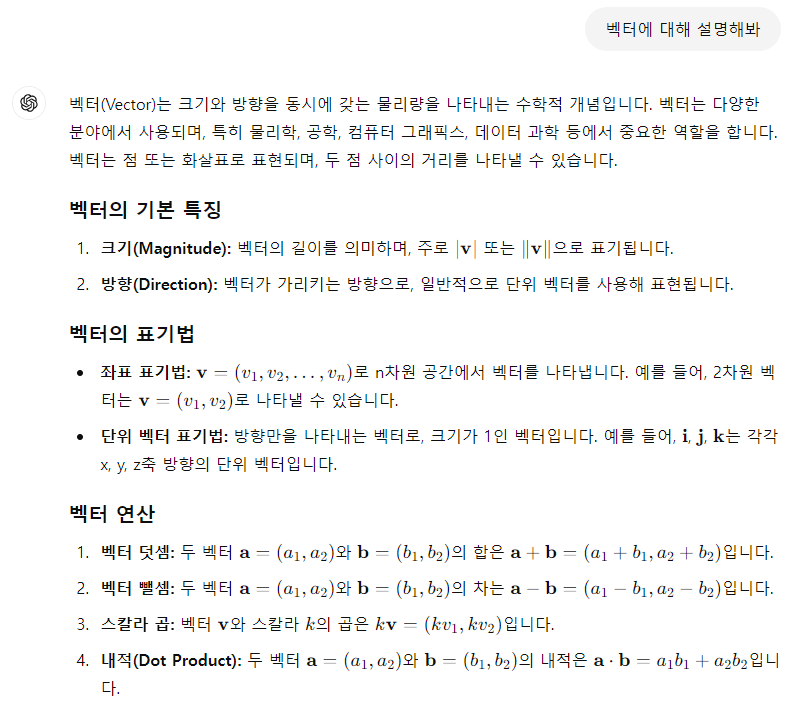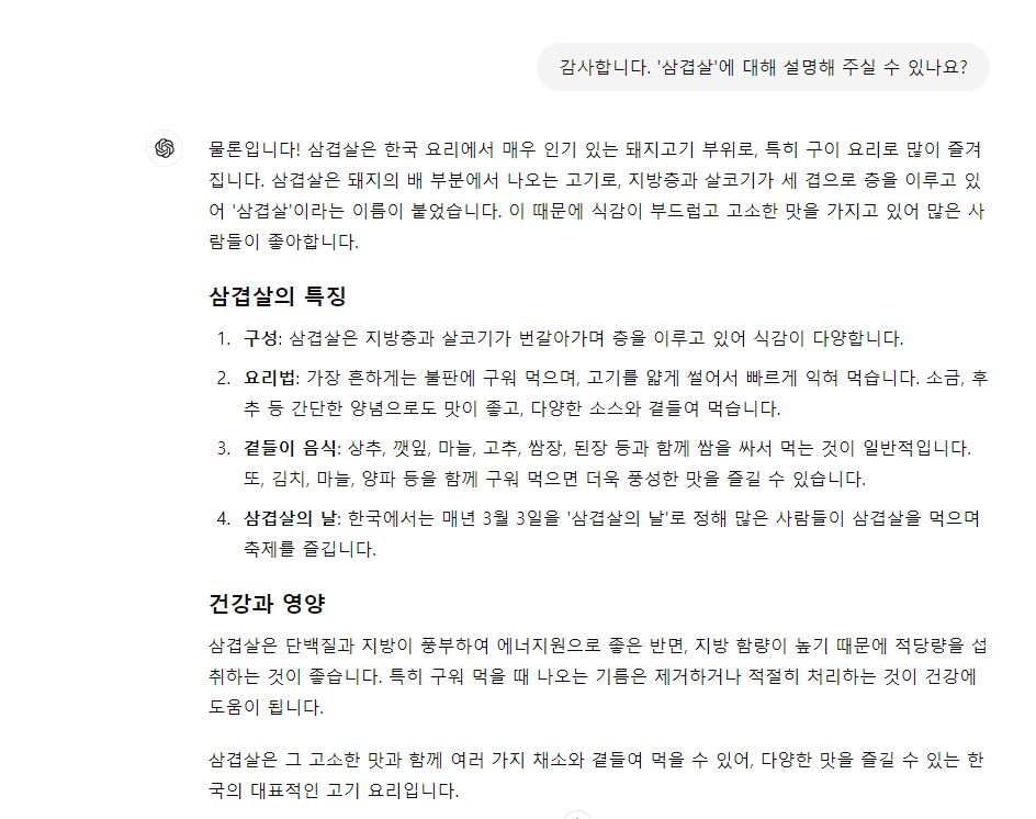 예를 들어, ChatGPT에게 너무 여러가지 질문을 한다고 미안함을 느끼거나, 사람처럼 느껴져서 질문을 할 때, "부탁해", "미안한데 혹시", "혹시 이것 좀 알려줄 수 있니?" 등의 예의를 갖춘 문구들을 넣어 질문을 할 수 있습니다. 뭔가 예의를 갖추면 조금 더 좋은 답변을 얻을 수 있지 않을까 하는 생각이 들 수도 있지만 실제로는 "이거 알려줘","~에 대해 말해줘." 등의 여러분들이 원하시는 질문의 본론만 이야기를 하셔야만 더 좋은 답변을 얻을 수 있습니다.