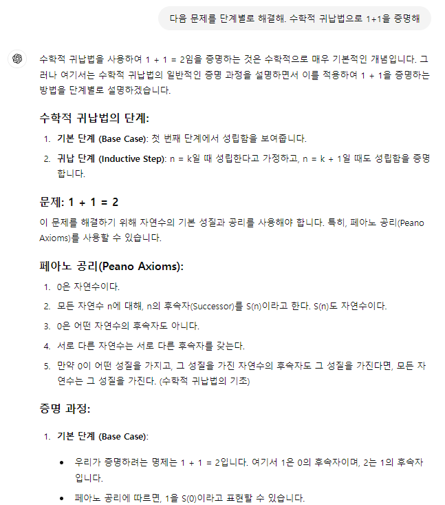"3개의 사과와 2개의 바나나가 있습니다. 모두 몇 개의 과일이 있나요?"라는 질문을 ChatGPT에게 했을 때, 연쇄사고를 도입하면 이렇게 다시 질문할 수 있습니다.