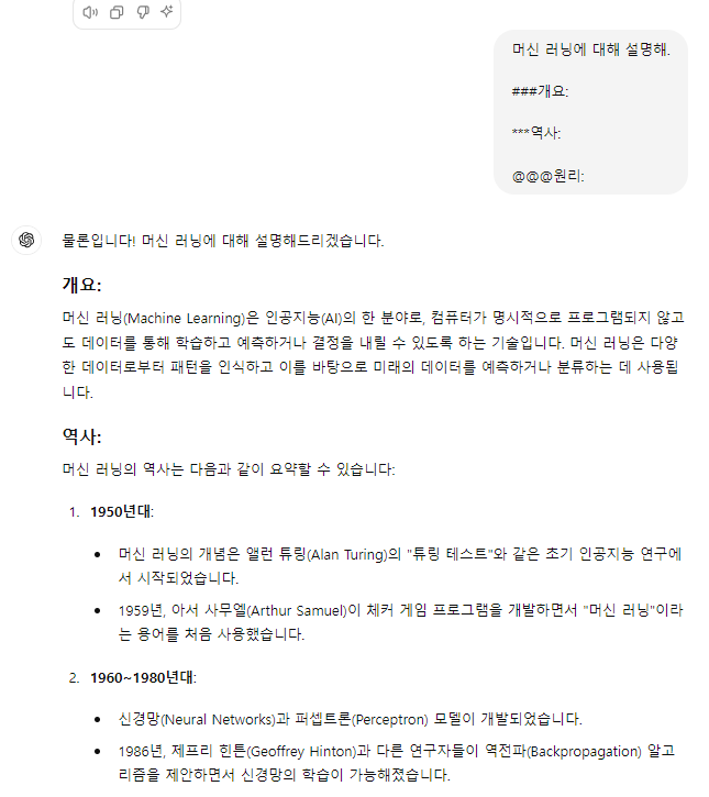 프롬프트 입력시 구분 기호를 사용하면 더 좋은 답변을 받을 수 있습니다.