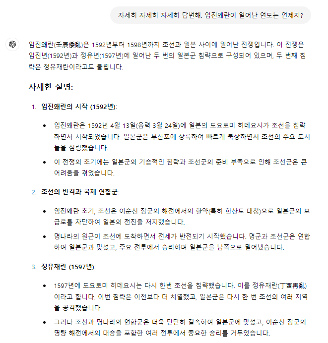 "자세히 자세히 자세히 답변해. 임진왜란이 일어난 연도는 언제지?"