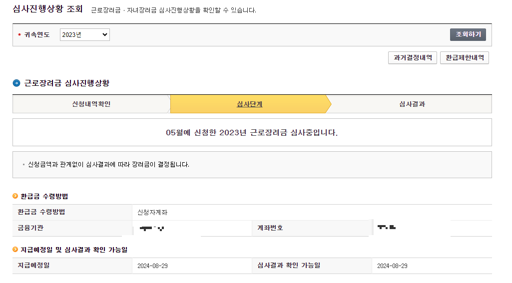 지난번에 근로장려금 정기 신청과 반기 신청에 대한 포스팅을 했었는데 그 당시 홈택스를 들어가서 진행 상황을 조회해 보면 아직 심사 중이라는 문구만 보였습니다. 그런데 8월에 진입한 후 얼마 지나지 않아 2024 근로장려금 지급일 확정이 되어 이렇게 소식을 공유하게 되었습니다.